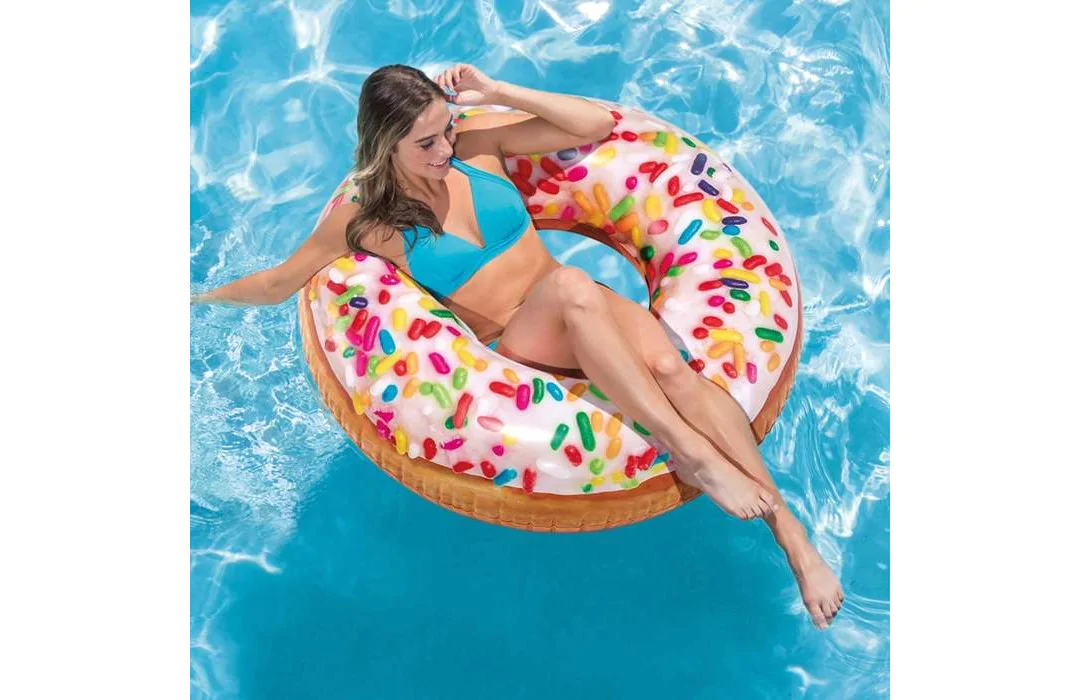 ✅Modne, Kolorowe, dmuchane koło na basen w kształcie Donuta.