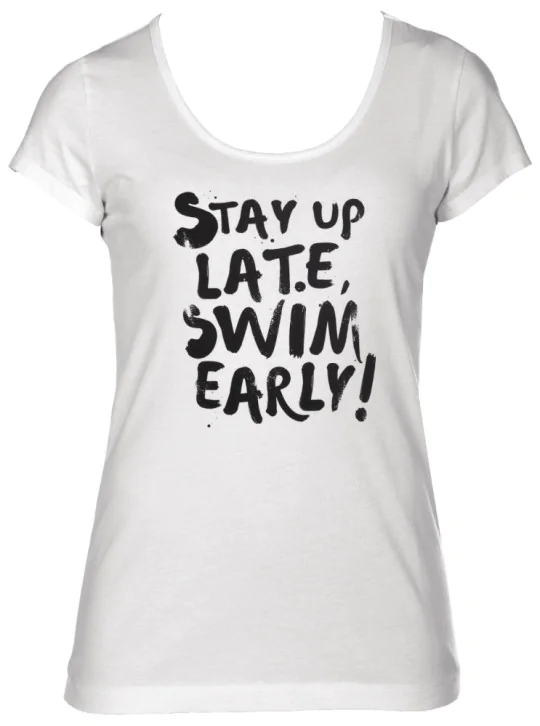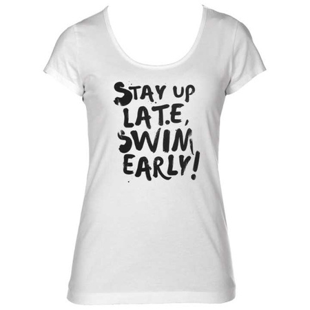 - Damska koszulka Areny to bardzo dobrej jakości T-Shirt ze sloganem dla każdej miłośniczki pływania i dobrej zabawy. Lekki materiał zapewnia odpowiednią termoregulację.