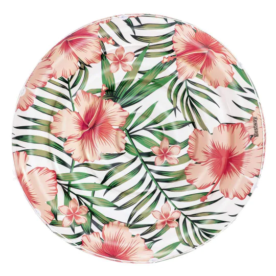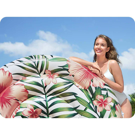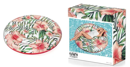 Jeżeli uwielbiasz spędzać czas w wodzie i chciałbyś skorzystać z odrobiny spokoju i relaksu w pojedynkę to zaopatrz się w dmuchaną wyspę do pływania. Ten okrągły materac z pewnością zapewni Ci wygodę a dzięki swojemu charakterystycznemu motywowi tropikalnych roślin pozwoli Ci wyróżnić się pomiędzy innymi plażowiczami. Materac posiada również linki asekuracyjne dzięki czemu z łatwością przeniesiesz go w dowolne miejsce.Wyspa wytworzona jest z wytrzymałego materiału PVC dzięki, któremu jest odporna na uszkodzenia.