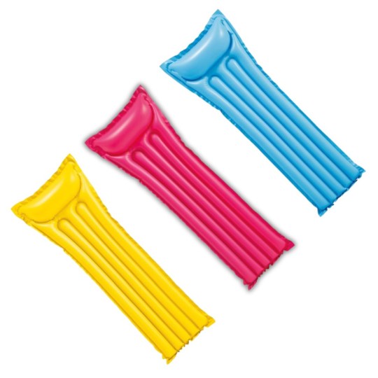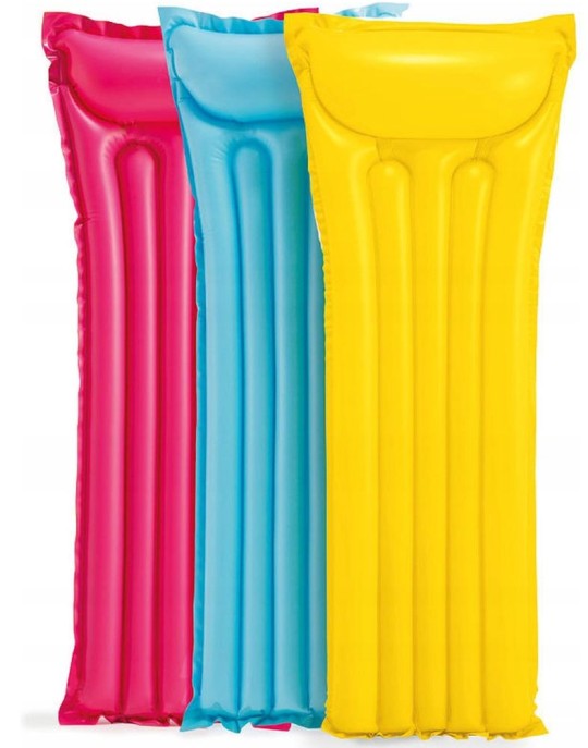 - Wypoczynek nad wodą daje dodatkową radość dzięki dmuchanemu materacowi. Jego zaletą jest wygodne oparcie z zagłówkiem. Materac jest wykonany z odpornego na uszkodzenia materiału PVC. Jego elastyczność dodatkowo amortyzuje uderzenia i tym samym zmniejsza r