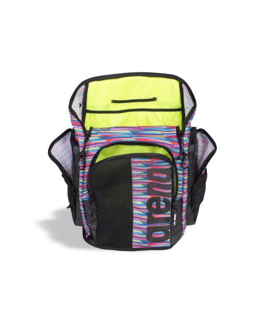 - Plecak Arena Spiky III 45 maksymalizuje przestrzeń w kompaktowej konstrukcji. Zaprojektowany z myślą o łatwym dostępie i organizacji, ładowany od góry, ma przegródki z siatki, które utrzymują wilgoć pod kontrolą po pływaniu lub treningu. Wykonany z wodood