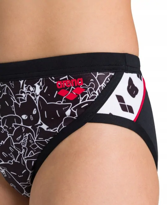Slipy kąpielowe chłopięce Arena Boy's Kitties Brief Junior Black White