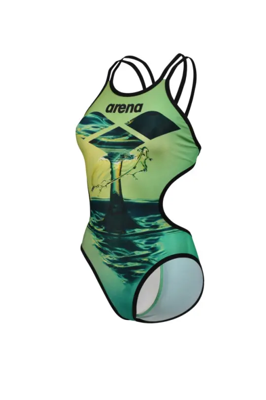 Strój kąpielowy damski Arena Women's One Double Cross Back Black Blue Cosmo Soft Green Multi
