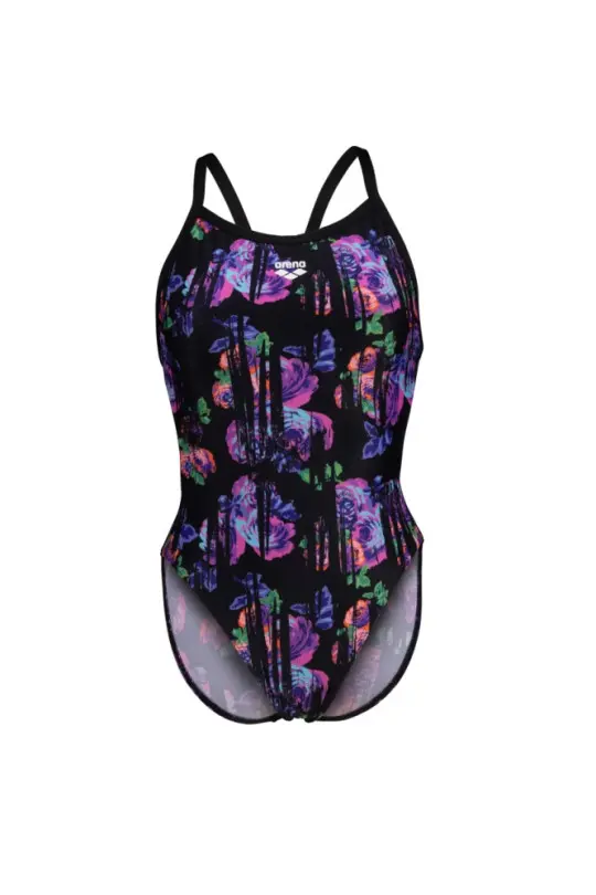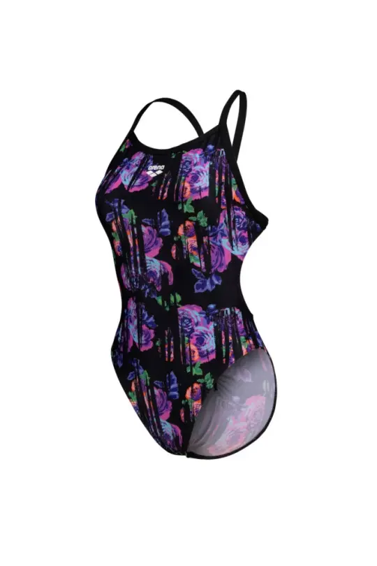 Strój kąpielowy damski Arena Women's Rose Texture Swimsuit X-Cross Back Multi Black