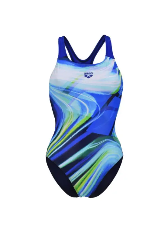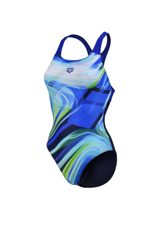 Strój kąpielowy damski Arena Women's Visual Waves Swim Pro Back Navy Neon Blue